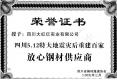 |  | 四川重點經銷商 | | 證明單位:邯鄲鋼鐵集團銷售公司 | | 證明日期:2009-02 | 點擊查看大圖 |