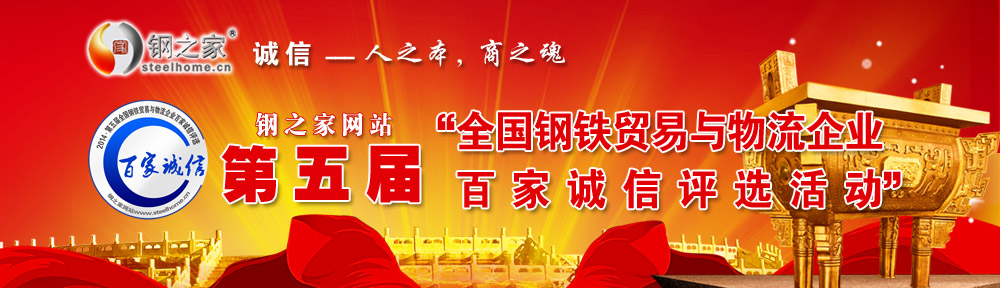 2010-2013年,鋼之家網(wǎng)站連續(xù)四屆“百家誠信企業(yè)”評選活動受到廣大鋼廠和鋼鐵流通企業(yè)的歡迎和認(rèn)可。2014年7月起鋼之家網(wǎng)站第五屆“全國鋼鐵貿(mào)易與物流企業(yè)百家誠信評選”正式啟動,經(jīng)過嚴(yán)格評選,鋼之家網(wǎng)站第五屆“全國鋼鐵貿(mào)易與物流企業(yè)百家誠信評選”名單于2014年11月1日正式揭曉。