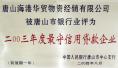 |  | 二00三年度最守信用貸款企業 | | 證明單位:中國人民銀行唐山市支行 | | 證明日期:2004-08 | 點擊查看大圖 |