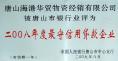 | 二00七年度最守信用貸款企業 | | 證明單位:中國人民銀行唐山市支行 | | 證明日期:2008-08 | 點擊查看大圖 |