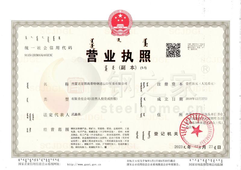 內蒙古宏圖高蒂特鋼進出口貿易有限公司成立于2018年12月27日,位于包頭市昆都侖區召廟,緊靠著包頭鋼鐵集團及包頭市最大的鋼材市場,屬河西重金屬產業園區!