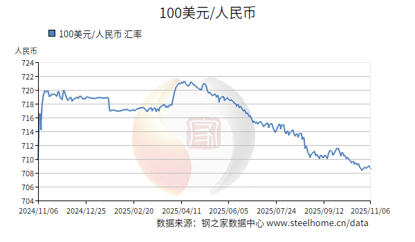 | 100美元/人民幣 | 708.65 | -0.36 | 0.05 | -10.24 | 1.45 |