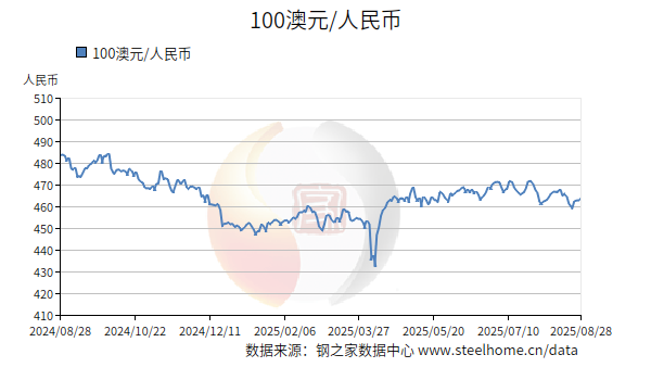 | 100澳元/人民幣 | 463.74 | 0.96 | -0.21 | 12.7 | -2.74 |
