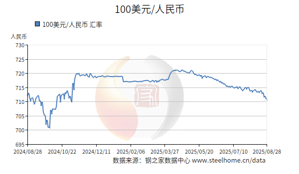 | 100美元/人民幣 | 710.63 | -0.45 | 0.06 | -8.26 | 1.16 |