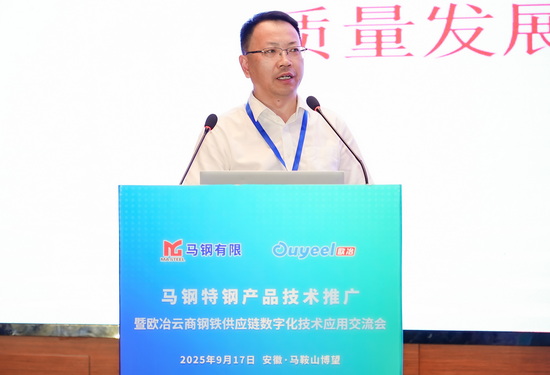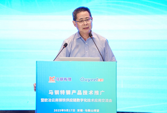 2025年9月17日下午,《馬鋼特鋼產品技術推廣暨歐冶云商鋼鐵供應鏈數字化技術應用交流會》在馬鞍山博望明發國際大酒店成功舉辦。本次會議由馬鋼特鋼、歐冶云商聯合主辦,博望區科工信局、博望區工商聯(總商會)、鋼之家網站、景隆鋼鐵協辦。來自博望及馬鞍山周邊特鋼產業鏈120多家下游企業150余名領導代表參加了本次會議。歐冶云商股份有限公司高級副總裁張維、馬鞍山鋼鐵有限公司特鋼公司總經理朱廣宏、馬鞍山市博望區區委常委、區政府副區長王韜、歐冶云商華東大區總經理、寶武物產總經理郭玉明、馬鞍山鋼鐵有限公司特鋼公司副總經理、銷售部部長楊輝、歐冶云商華東大區副總經理、歐冶馬鞍山總經理芮成等領導出席會議,博望區工商聯(總商會)、博望區青年企業家商會、博望愛心助教協會、博望機床行業商會、博望商會、新市商會、丹陽商會代表出席會議。會議由鋼之家網站高級顧問李建設主持。