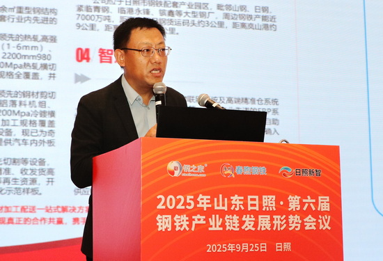 2025年9月25日,鋼之家網站“2025年山東日照·第六屆鋼鐵產業鏈發展形勢會議”在日照喜來登酒店召開。本次會議由鋼之家網站、春煦鋼鐵貿易(上海)有限公司、 日照新智綠色產業科技有限公司聯合主辦,山東鋼鐵股份有限公司、歐冶云商股份有限公司、中國大宗物資網特別支持,上海勁成實業有限公司贊助,青島特殊鋼鐵有限公司、濟南三鼎物資有限公司、青島三和鋼鐵有限公司、青島安林鋼材有限公司、四川立飛特科技有限公司、德譽精工科技(日照)有限公司、山東興諾再生資源有限公司支持。來自山東及周邊地區的鋼廠、鋼材流通企業、期貨公司及相關行業代表等200余人參加了會議。會議由鋼之家網站總經理助理董素琦主持。