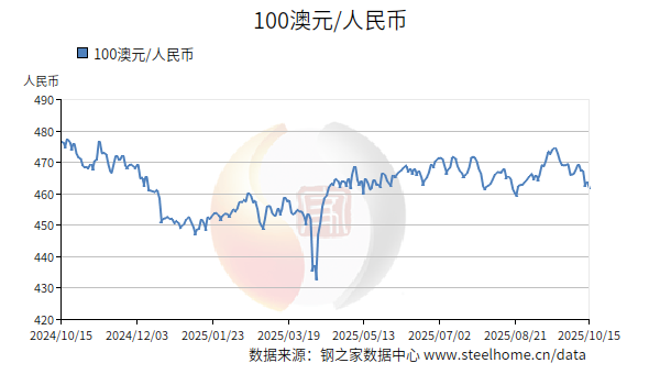 | 100澳元/人民幣 | 461.66 | -2.05 | 0.44 | 10.62 | -2.3 |