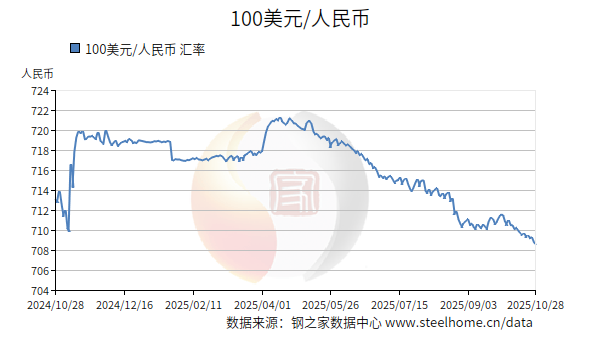 | 100美元/人民幣 | 708.56 | -0.25 | 0.04 | -10.33 | 1.46 |