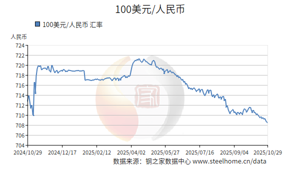 | 100美元/人民幣 | 708.43 | -0.13 | 0.02 | -10.46 | 1.48 |
