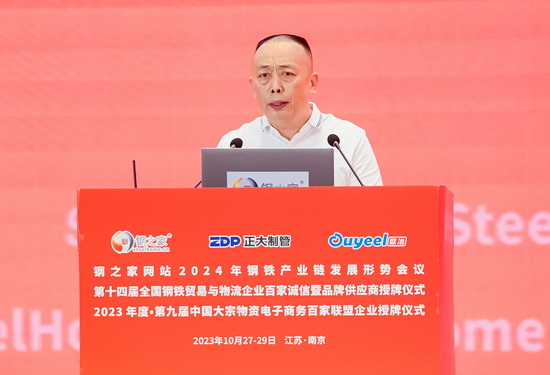 2023年10月27-29日,由鋼之家網站主辦,邯鄲正大制管集團股份有限公司、歐冶云商股份有限公司冠名聯辦,上海期貨交易所、南京鋼鐵股份有限公司、成渝釩鈦科技有限公司、盤古云鏈(天津)數字科技有限公司、廈門建發金屬有限公司、上海鋼鐵俠電子商務有限公司、廣西柳州鋼鐵集團有限公司、江蘇省鑌鑫鋼鐵集團有限公司聯辦,河南天元清潔能源有限公司、天津友發鋼管集團股份有限公司、南京鋼鋒實業有限公司、中鐵物資集團有限公司協辦,大連商品交易所、中國大宗物資網特別支持,中鋁國際貿易集團有限公司、寧夏鋼鐵(集團)有限責任公司、安徽長江鋼鐵股份有限公司、春煦鋼鐵貿易(上海)有限公司、申銀萬國期貨有限公司、永安期貨股份有限公司、山西黎城粉末冶金有限責任公司、承德信通首承科技有限責任公司、靖江太和港務有限公司、安徽鋼之家、安徽鋼之家供應鏈、重慶鋼之家、易鋼投資支持的《鋼之家網站2024年鋼鐵產業鏈發展形勢會議》在南京召開。在本屆會議期間,舉辦了《鋼鐵供應鏈模式創新》、《鋼之家網站2023年秋季報告會》、《產業金融化與風險管理》、《鋼之家期現實戰心得交流會》、《第二十六屆鋼鐵企業市場信息聯席會議暨第九屆鋼鐵生態圈市場信息大會》、《原燃料市場形勢與結構性問題研究》和《鋼材:低碳環?!そY構調整·模式創新》等七場專題論壇。來自國內外包括120多家鋼廠和80多家原燃料企業在內的產業鏈企業及相關機構、媒體等700多家單位的900多名嘉賓參加了本屆會議。